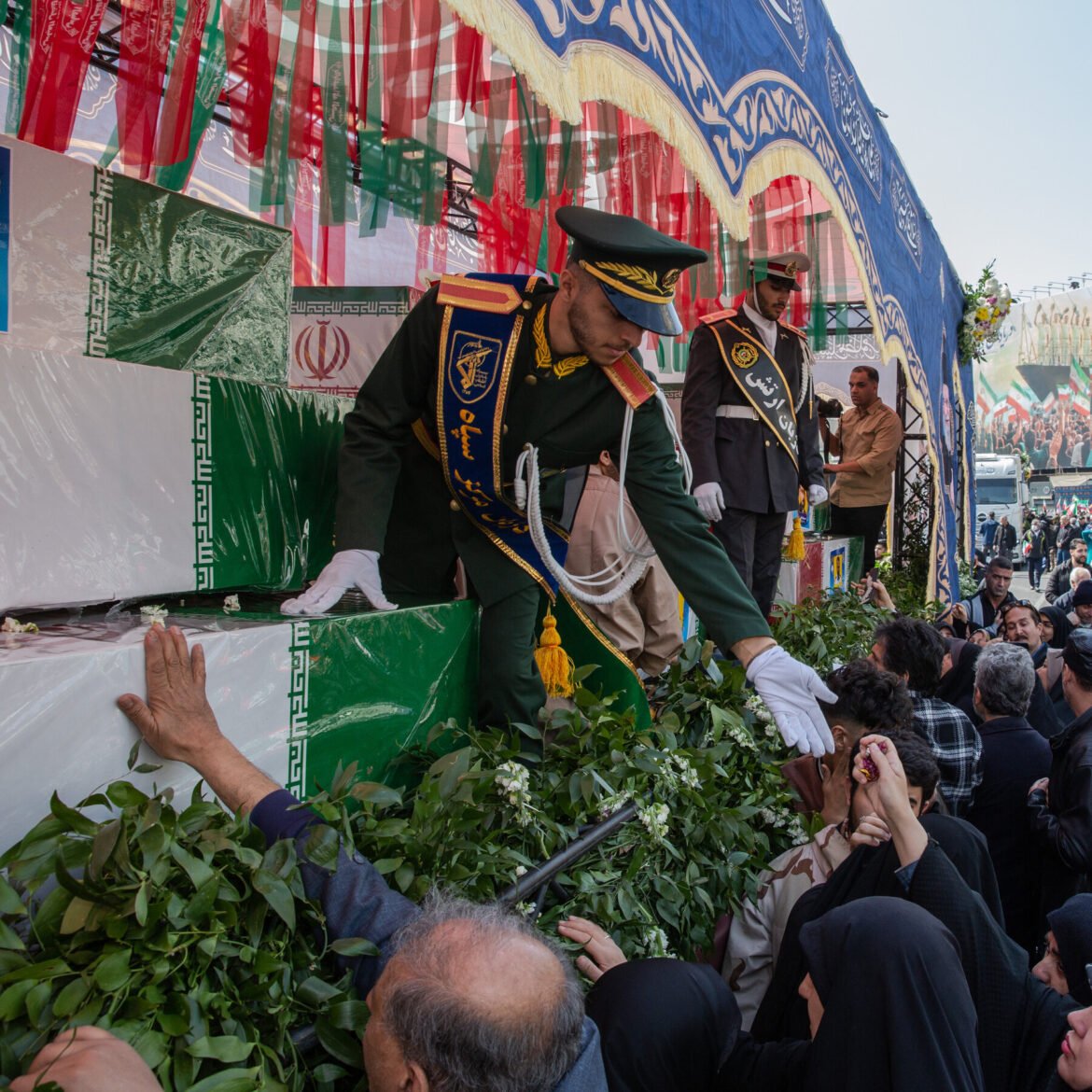 Some died in Iran, others on a sea far from home. They were honored together Wednesday at a procession in Tehran.