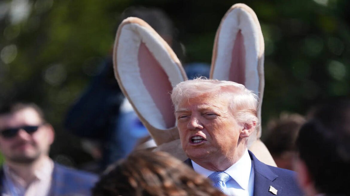President Donald Trump participates in the White House Easter Egg Roll on the South Lawn of the White House, Monday, April 6, 2026, in Washington. (AP Photo/Mark Schiefelbein)